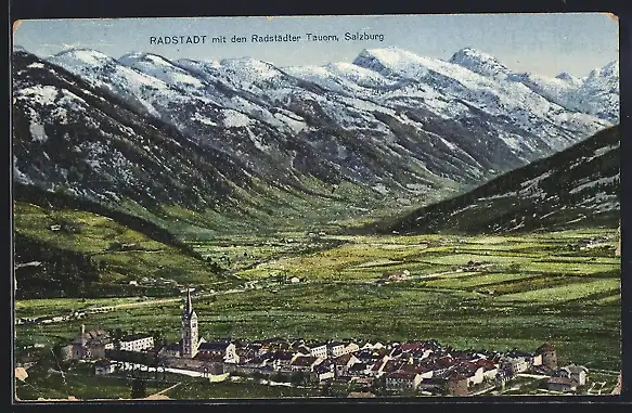 AK Radstadt, Totalansicht mit Tauern aus der Vogelschau