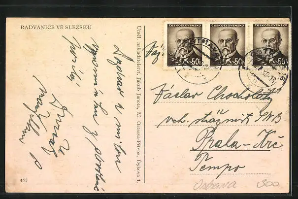 AK Radvanice ve Slezsku, Hostinec Brennu, stred obce, Celkový pohled