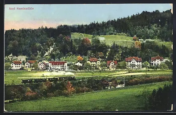 AK Rämismühle, Asyl Rämismühle mit Eisenbahn
