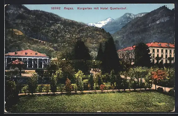 AK Ragaz, Kurgarten mit Hotel Quellenhof