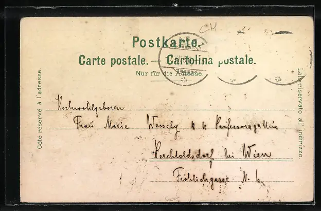 alte Ansichtskarte, gelaufen, Briefmarke entfernt, rückseitig Oberflächenschaden, guter Zustand
