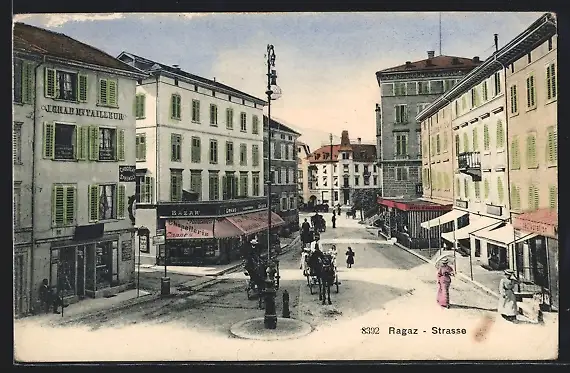 AK Ragaz, Strasse mit Geschäften