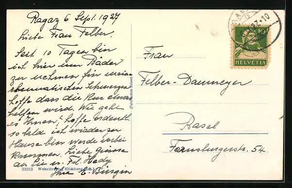 gelaufen 1927, Eckknick li. unten, Stempelspur, guter Zustand