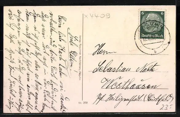 alte Ansichtskarte, gelaufen 1937, guter Zustand