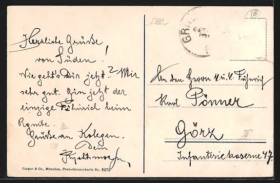 alte Ansichtskarte, gelaufen, Briefmarke entfernt, rückseitig Oberflächenschaden, Einriss li. oben, Eckknick unten li., guter Zustand