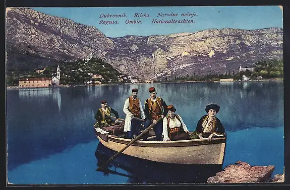 AK Ragusa, Leute in Nationaltrachten in einem Ruderboot