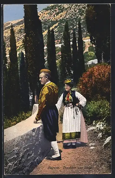 AK Ragusa, Trachten aus Canali, Paar blickt in die Ferne