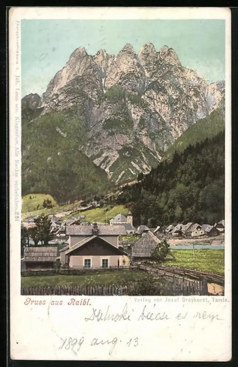 AK Raibl, Ortsansicht mit Blick auf den Raibler Seekopf
