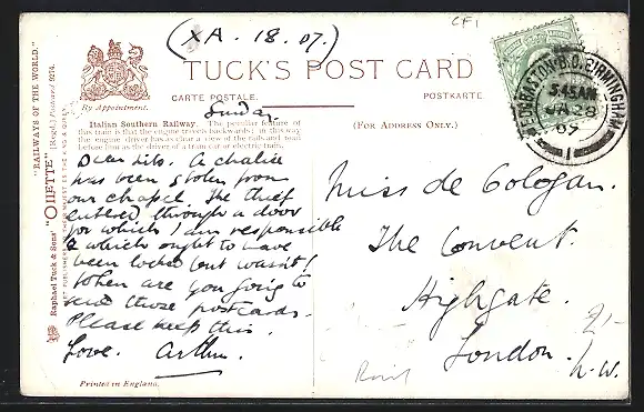 alte Ansichtskarte, gelaufen 1907, Eckknick und Bugspur unten re., Stempelspur, guter Zustand