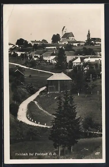 AK Rainbach bei Freistadt, Teilansicht mit Kirche und Strassenpartie