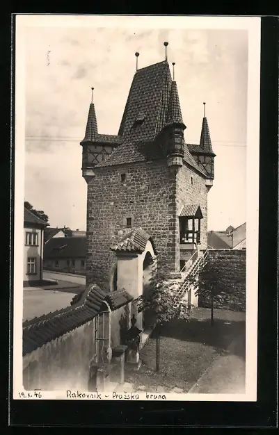AK Rakovnik, Strassenpartie mit Gebäudeansicht