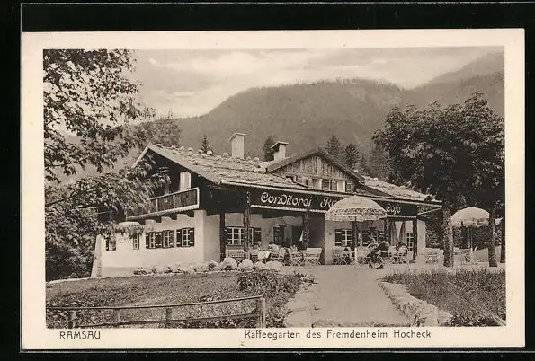 AK Ramsau, Kaffeegarten des Fremdenheim Hocheck