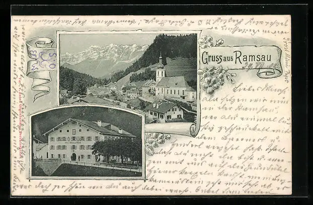 AK Ramsau, Ortsansicht mit Kirche, Gasthaus zu Ramsau