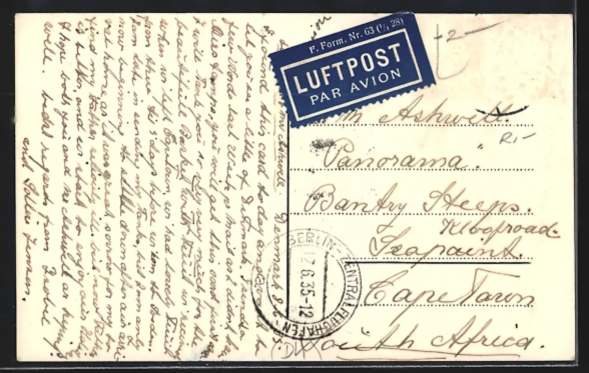 gelaufen 1935, Briefmarke entfernt, Eckknick li. unten, guter Zustand