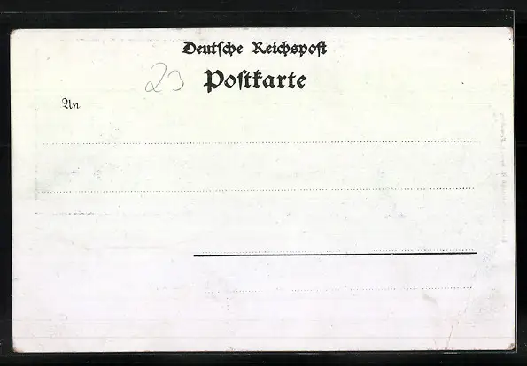 Personenbezogene Daten auf der Rückseite der Karte wurden durch blauen Textmarker unkenntlich gemacht. Die blauen Stellen sind auf die Vorderseite durchgeweicht und wirken sich negativ auf das Postkartenfoto aus