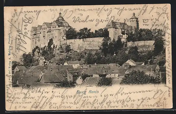 AK Ranis, Ortsansicht mit Burg Ranis