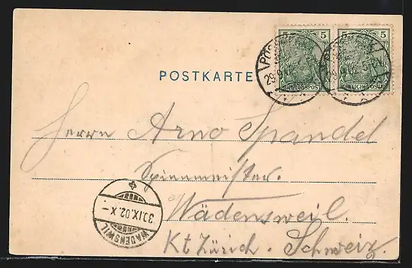 alte Ansichtskarte, gelaufen 1902, guter Zustand