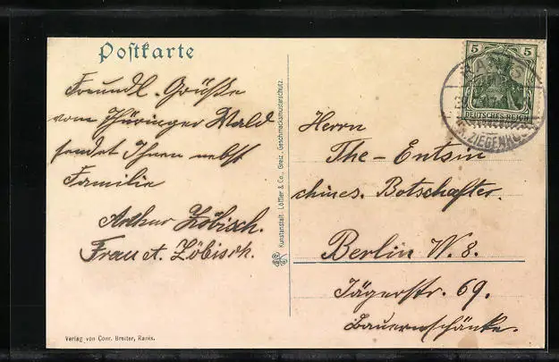 alte Ansichtskarte, gelaufen 1907, guter Zustand