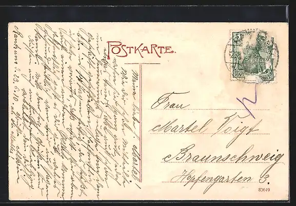 alte Ansichtskarte, gelaufen, Briefmarke entfernt, guter Zustand