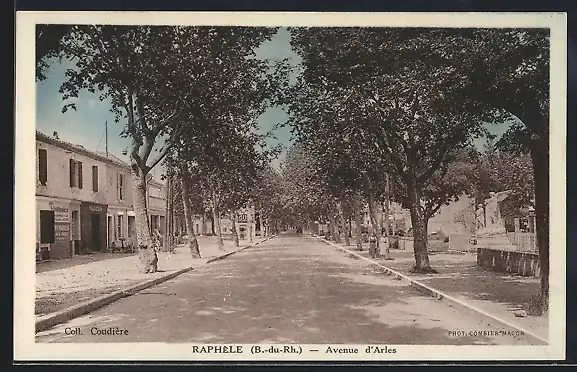 AK Raphèle, Avenue d`Arles avec arbres alignés et bâtiments adjacents