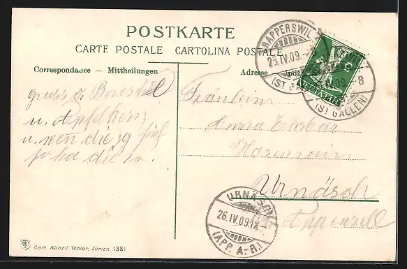 alte Ansichtskarte, gelaufen 1909, Stempelspur, guter Zustand