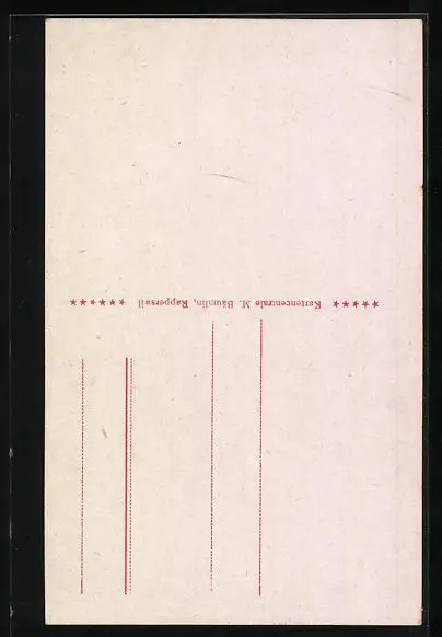 Personenbezogene Daten auf der Rückseite der Karte wurden durch blauen Textmarker unkenntlich gemacht. Die blauen Stellen sind auf die Vorderseite durchgeweicht und wirken sich negativ auf das Postkartenfoto aus