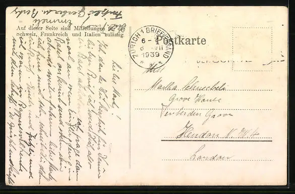 gelaufen 1939, Briefmarke entfernt, guter Zustand