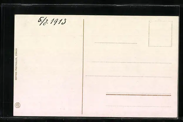 Personenbezogene Daten auf der Rückseite der Karte wurden durch blauen Textmarker unkenntlich gemacht. Die blauen Stellen sind auf die Vorderseite durchgeweicht und wirken sich negativ auf das Postkartenfoto aus