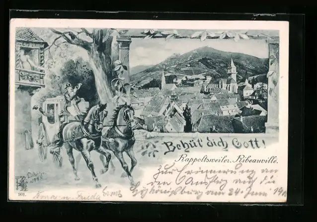 AK Rappoltsweiler, Teilansicht, Postkutsche