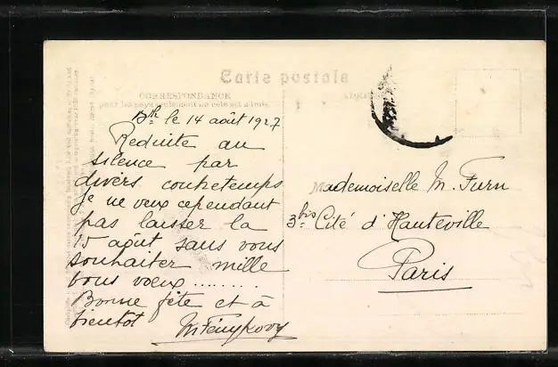 alte Ansichtskarte, gelaufen 1927, Briefmarke entfernt, rückseitig Oberflächenschaden, guter Zustand