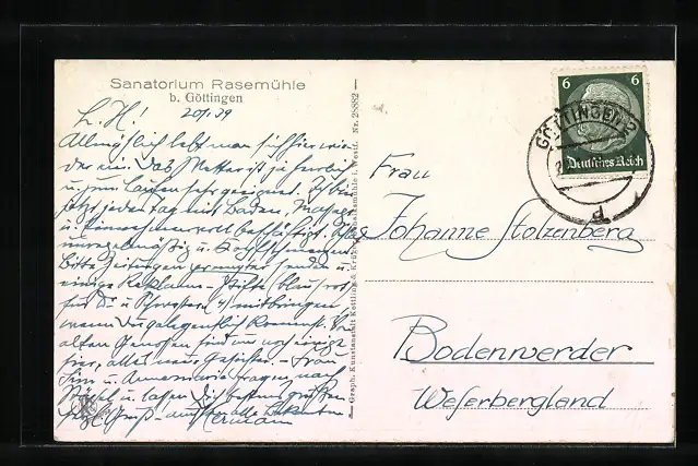 AK Rasemühle b. Göttingen, Das Sanatorium, Hauptgebäude