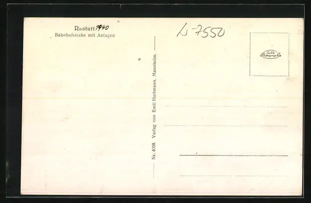 AK Rastatt, Bahnhofstrasse mit Anlagen