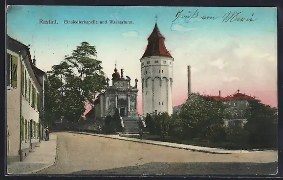 AK Rastatt, Einsiedlerkapelle und Wasserturm