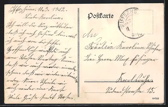 alte Ansichtskarte, gelaufen 1912, Briefmarke entfernt, guter Zustand