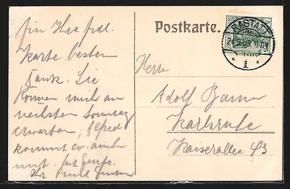 alte Ansichtskarte, gelaufen 1909, guter Zustand