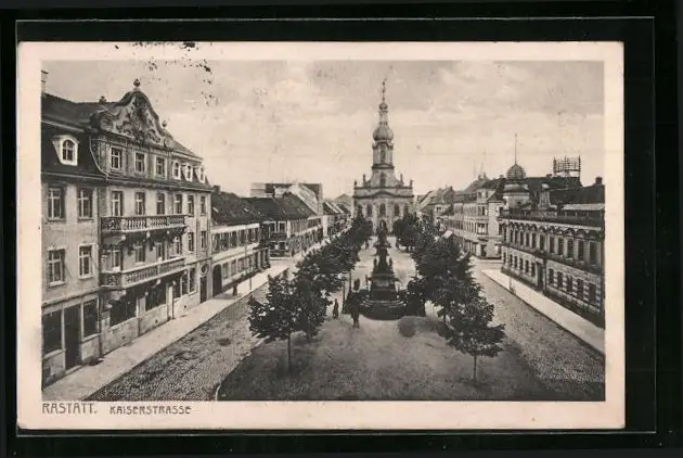 AK Rastatt, Kaiserstrasse mit Kirche und Denkmal