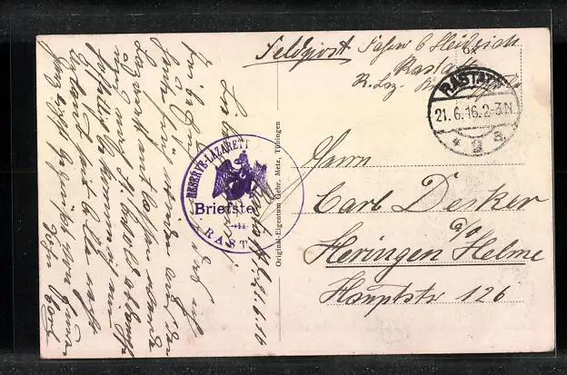 gelaufen 1916 als Feldpost, Stempelspur, guter Zustand