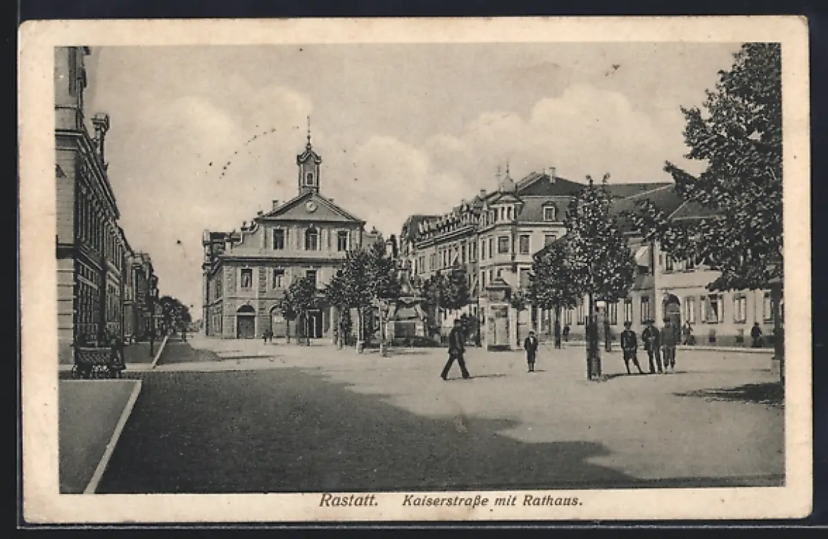 AK Rastatt, Kaiserstrasse mit Rathaus