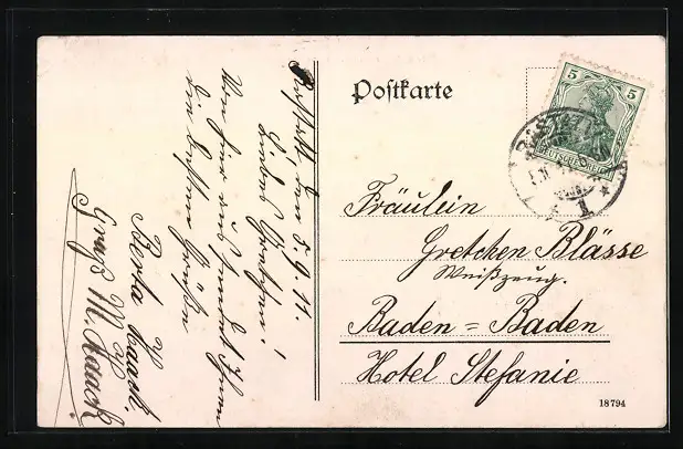 gelaufen 1911, Eckknick rechts oben, guter Zustand