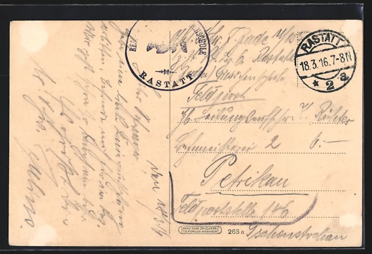 alte Ansichtskarte, gelaufen 1916, rückseitig Oberflächenschaden, guter Zustand