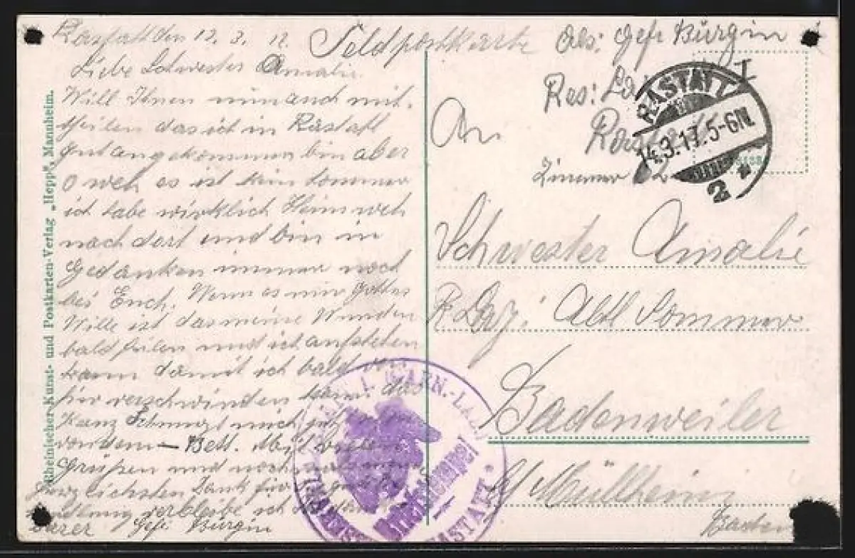 gelaufen 1917, rückseitig Klebe- und Papierreste, guter Zustand