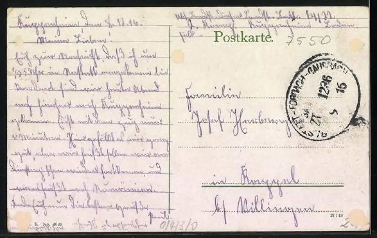 alte Ansichtskarte, gelaufen, rückseitig Oberflächenschaden, guter Zustand