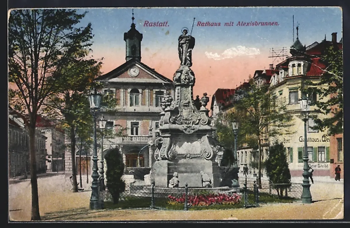 AK Rastatt, Rathaus, Alexisbrunnen, Gasthaus