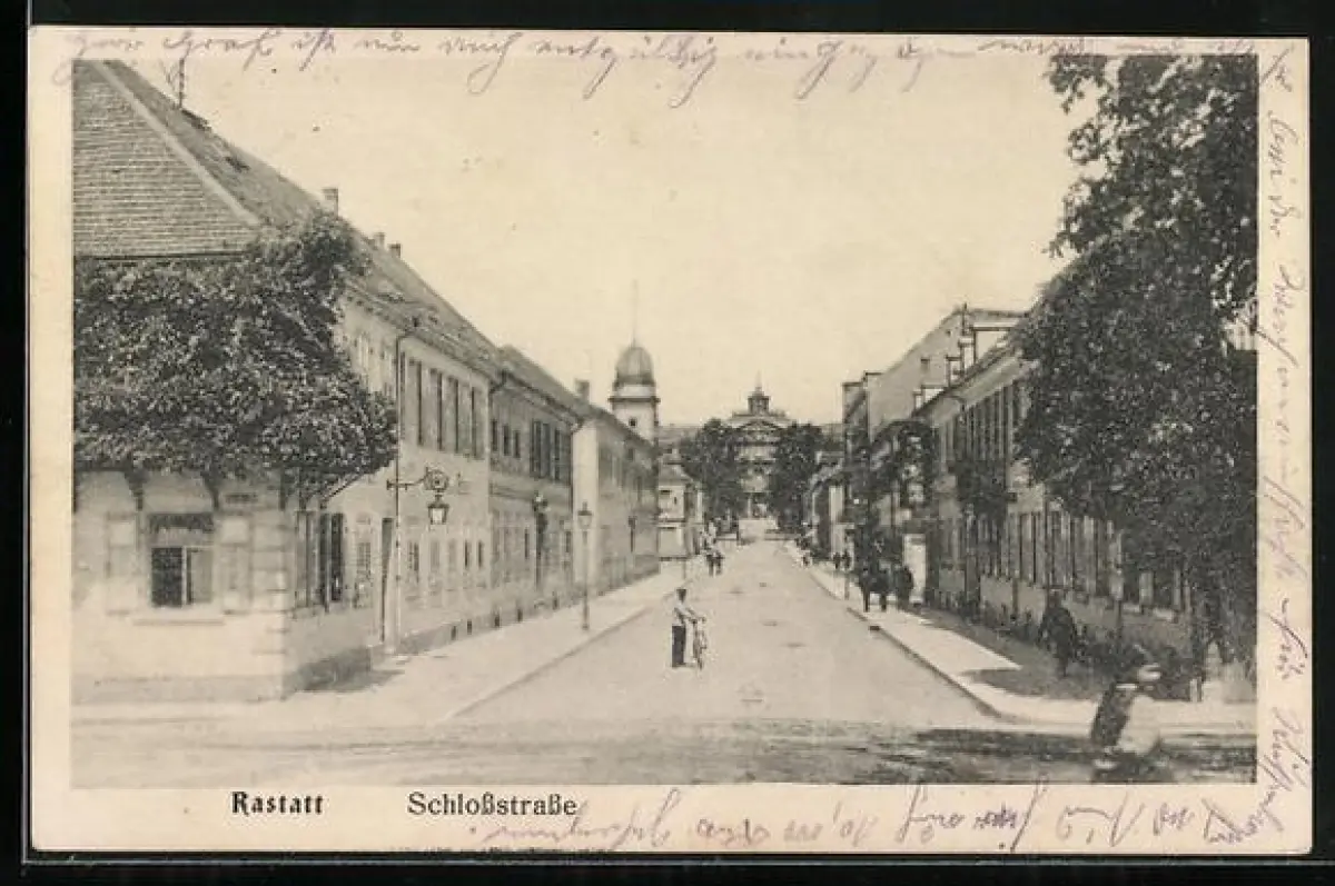 AK Rastatt, Schlossstrasse mit Wohngebäuden
