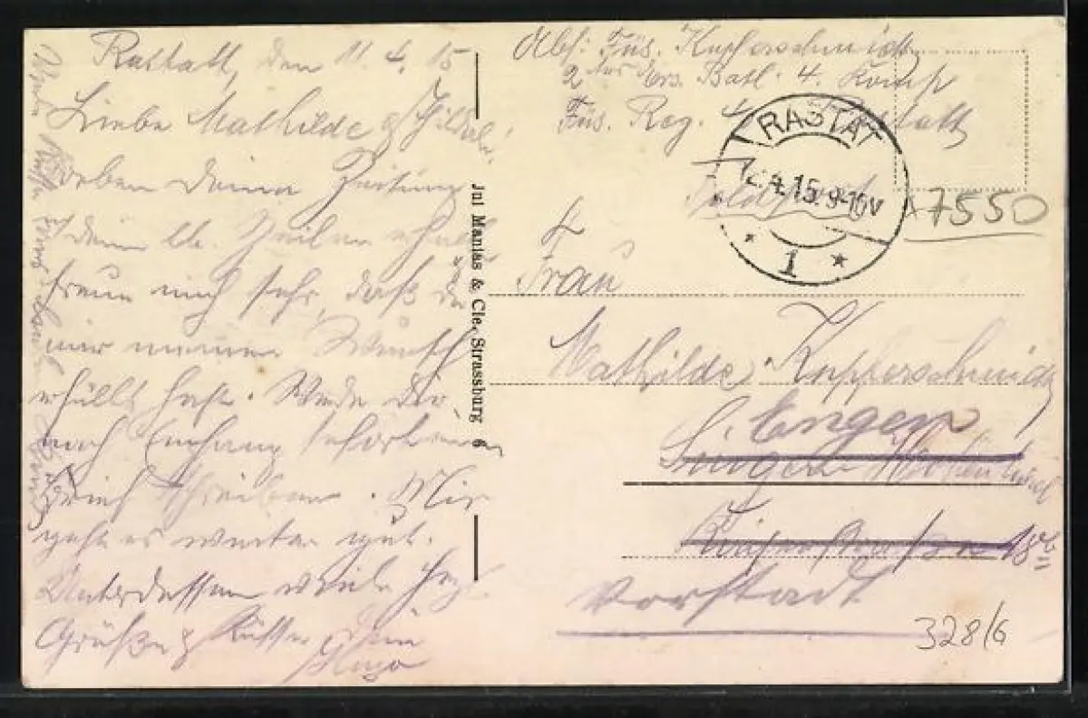 alte Ansichtskarte, gelaufen 1915 als Feldpost, guter Zustand