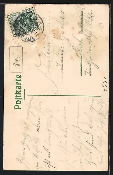 alte Ansichtskarte, gelaufen 1907, Briefmarke entfernt, rückseitig Oberflächenschaden, guter Zustand
