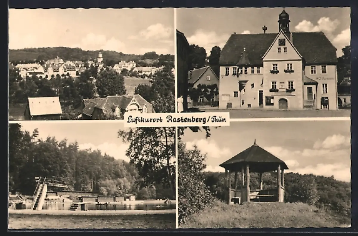 AK Rastenberg /Thür., Rathaus, Schwimmbad, Pavillon