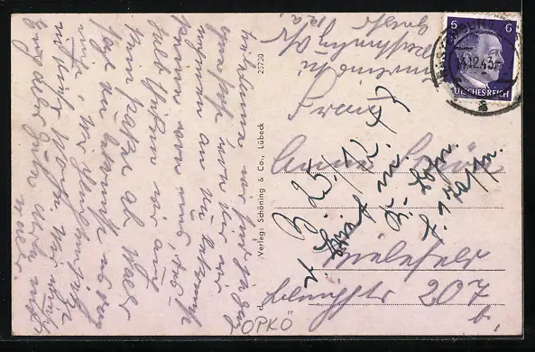 alte Ansichtskarte, gelaufen 1943, Briefmarke tw. entfernt, guter Zustand