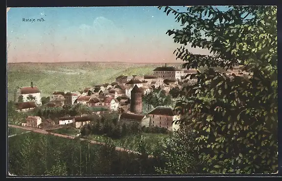 AK Rataje n. S., Totalansicht mit Strasse aus der Vogelschau