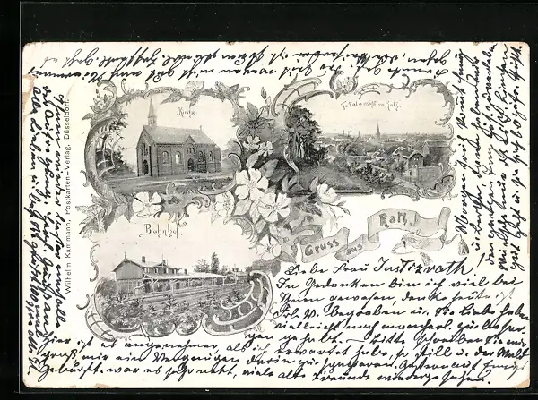AK Rath, Totalansicht, Kirche, Bahnhof
